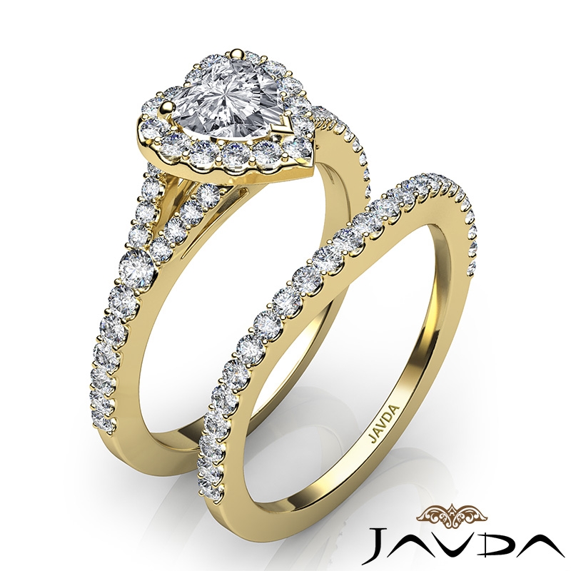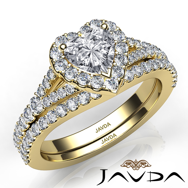 U Prong Diamond Engagement Ring Heart Semi Mount Bridal Set 18k Yellow Gold 0.8Ct.