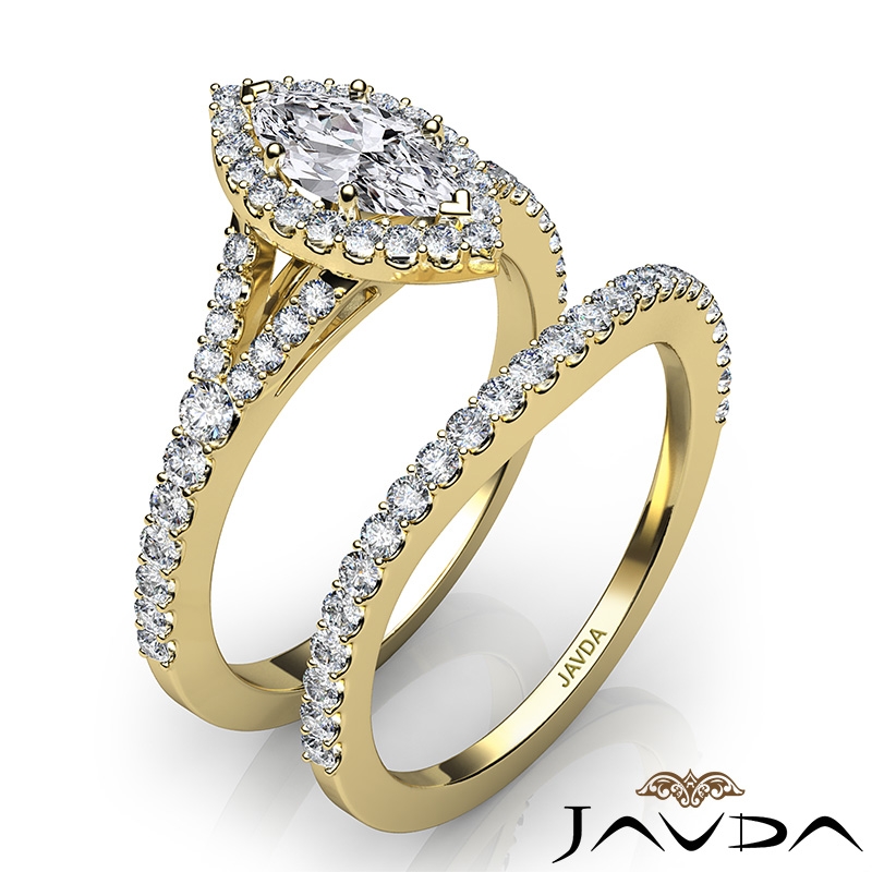 U Prong Diamond Engagement Ring Marquise Semi Mount Bridal Set 14k Yellow Gold 0.82Ct.