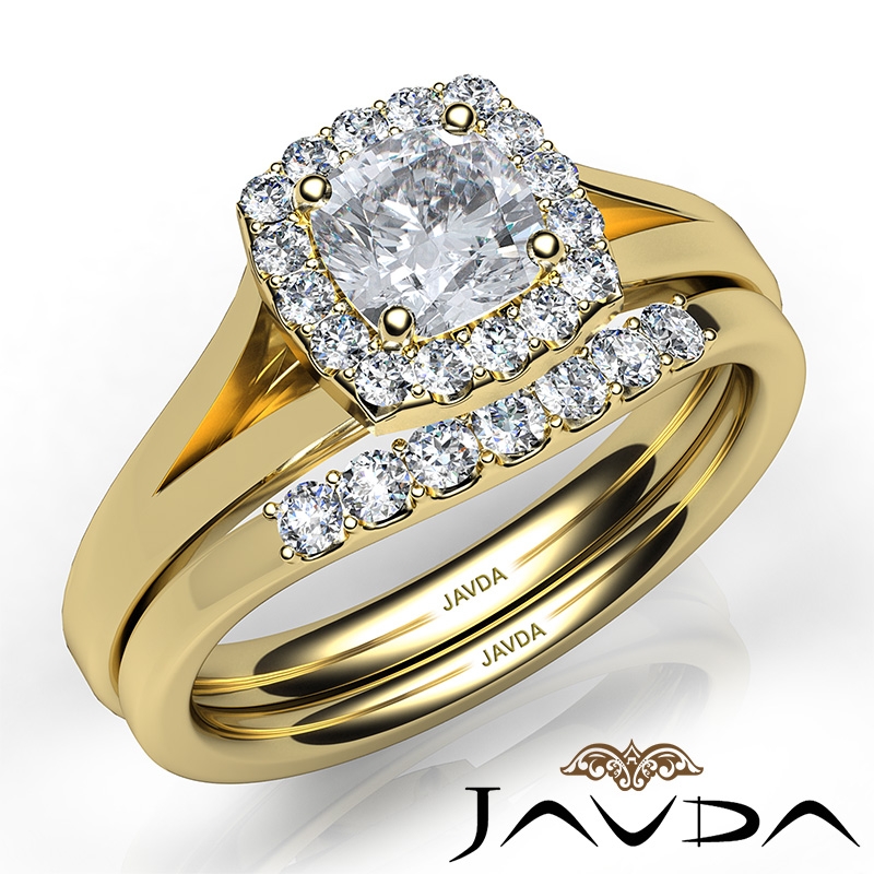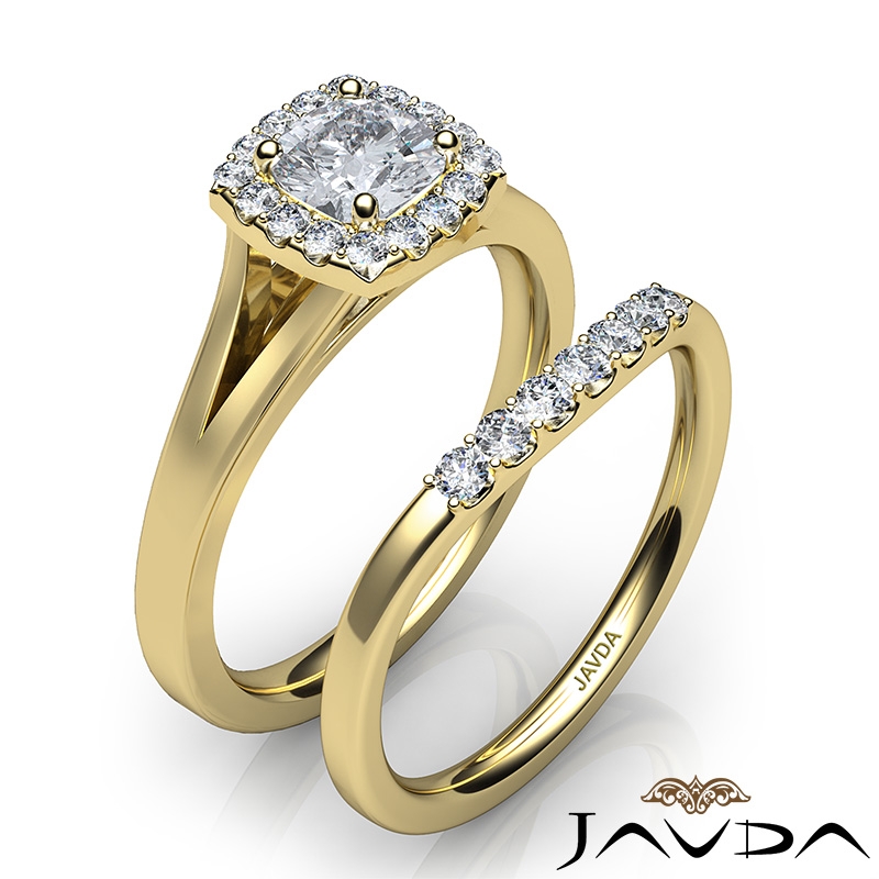 U Prong Diamond Engagement Cushion Semi Mount Ring Bridal Set 18k Yellow Gold 0.41Ct.