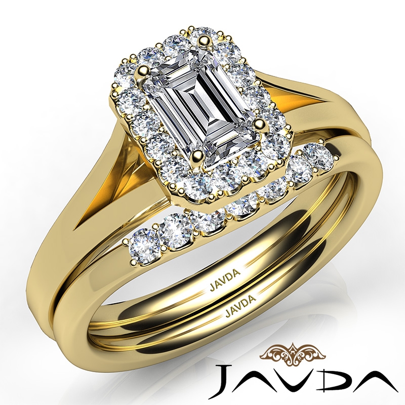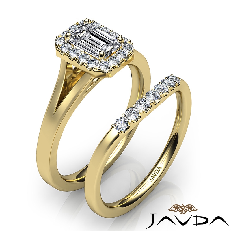 Emerald Diamond U Prong Engagement Semi Mount Ring Bridal Set 18k Yellow Gold 0.45Ct.