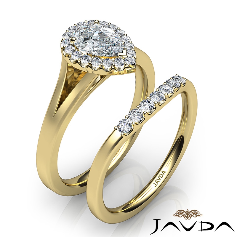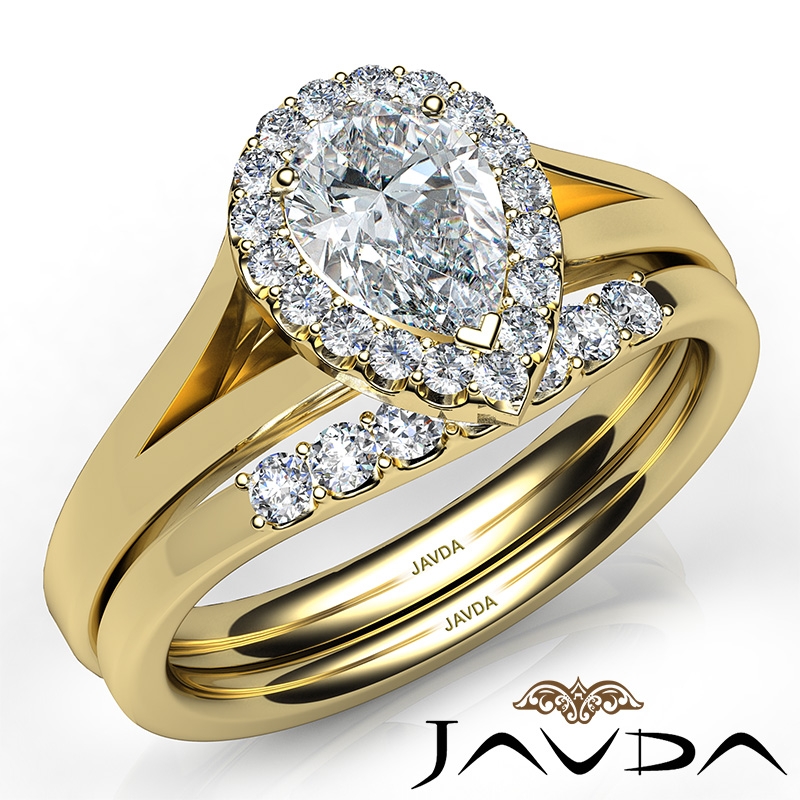 Pear Diamond U Prong Engagement Semi Mount Ring Bridal Set 14k Yellow Gold 0.45Ct.