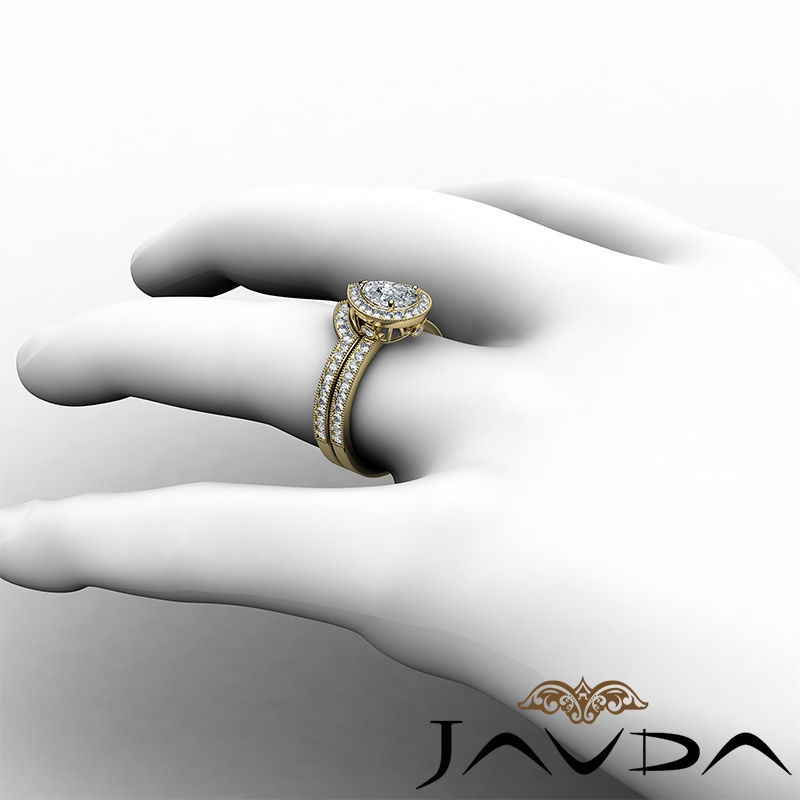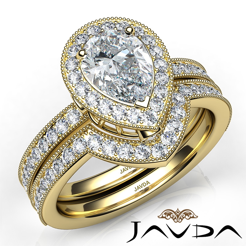 Diamond Engagement Ring Pear Halo Pave Bridal Set 18k Yellow Gold Semi Mount 1Ct.