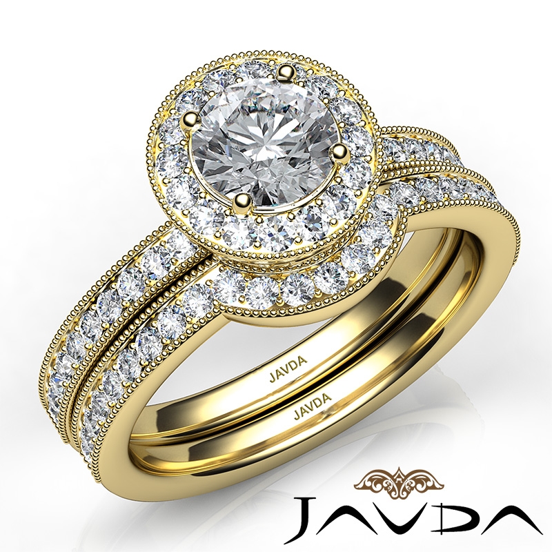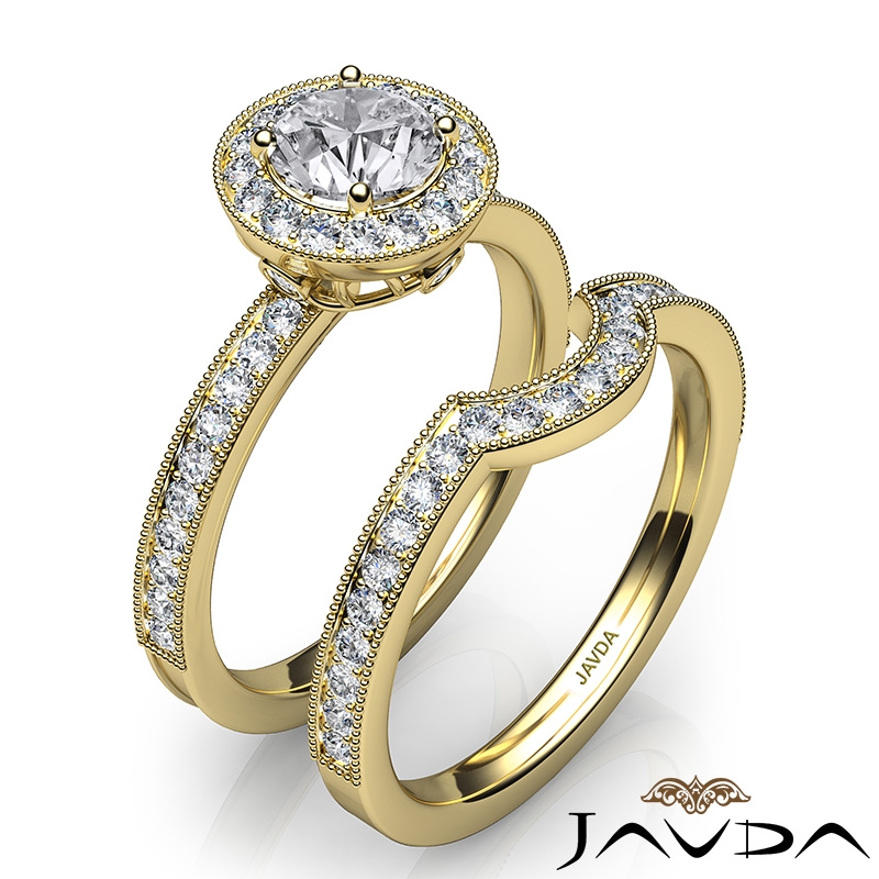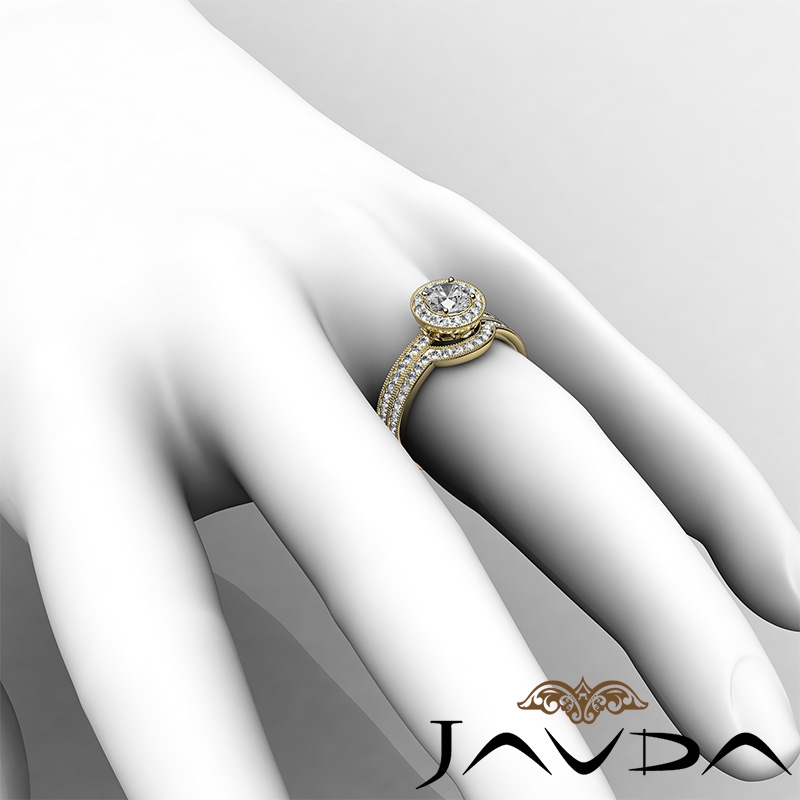 Halo Pave Diamond Engagement Ring Round Bridal Set 18k Yellow Gold Semi Mount 1Ct.