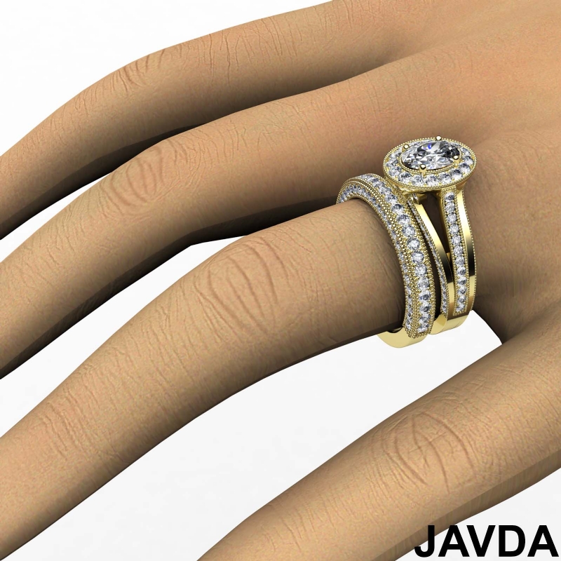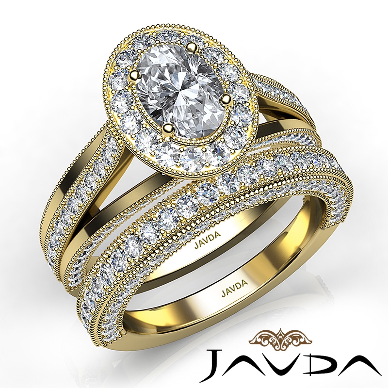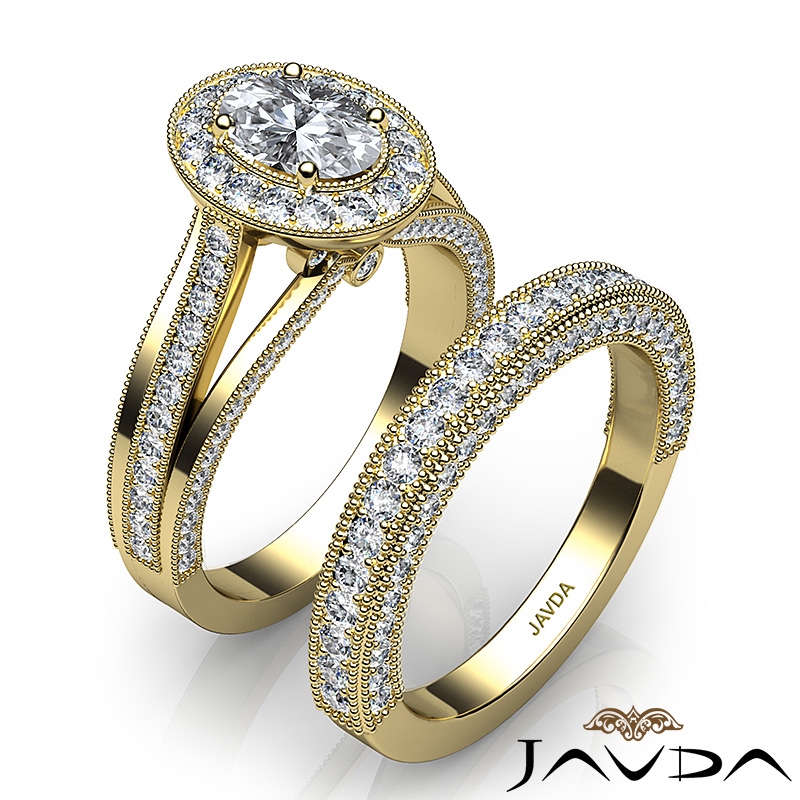 Pave Diamond Engagement Ring Bridal Sets 14k Yellow Gold Oval Semi Mount 1.7Ct.