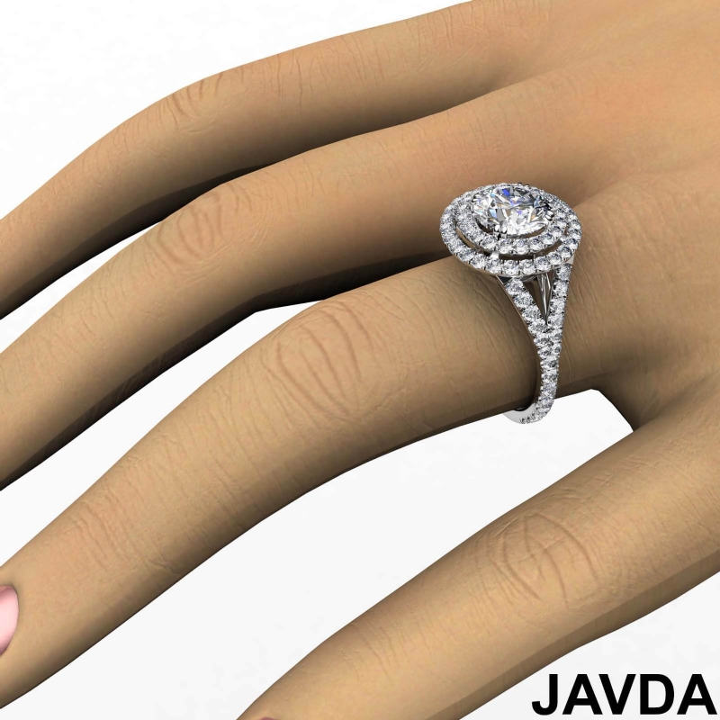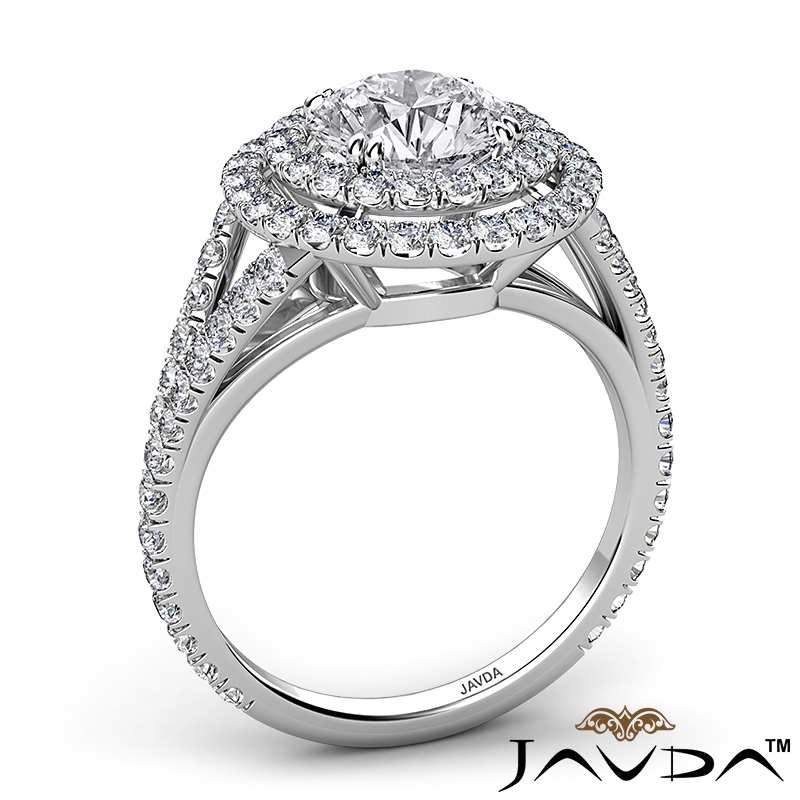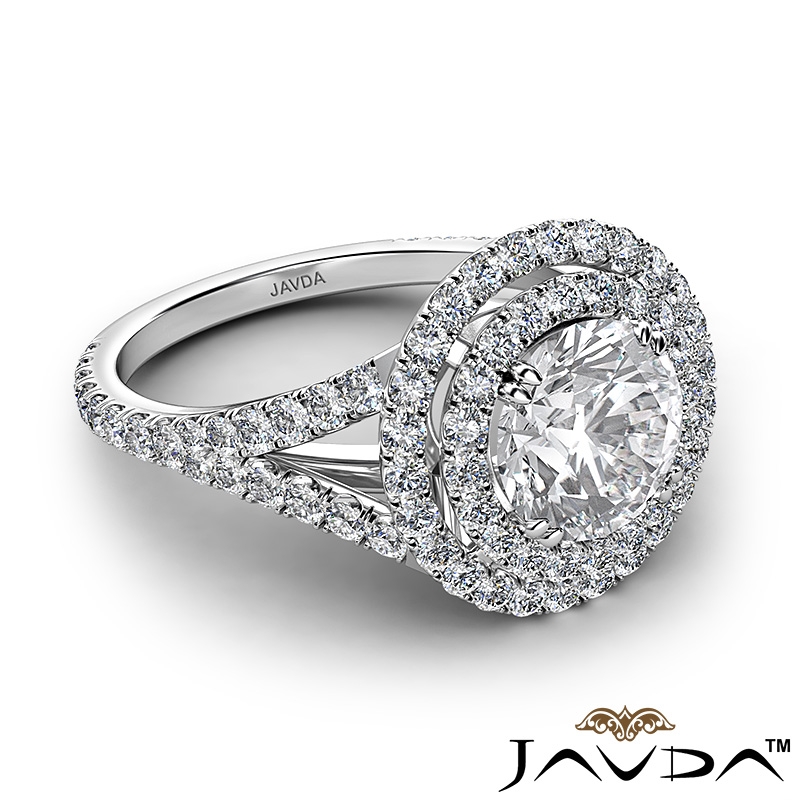 Double Halo Split Shank style Engagement Ring, center is Round shape Diamond Report by GIA, H Color & SI1 clarity, Made in Platinum 950 (2.2 ct. tw.)