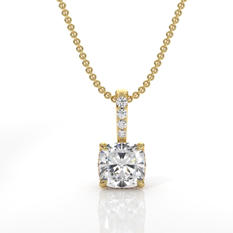 style Engagement Pendant, center is Cushion shape Diamond Report by GIA, D Color & VS1 clarity, Made in 18k Yellow Gold (0.57 ct. tw.)