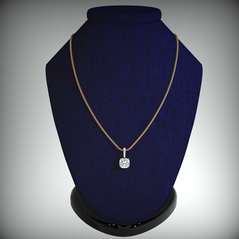 cushion diamond engagement pendant report by gia, d color & vs1 clarity, 18k yellow gold (0.57 ct. tw.)