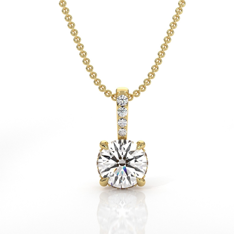 round diamond engagement pendant report by gia, f color & vs2 clarity, 18k yellow gold (0.57 ct. tw.)