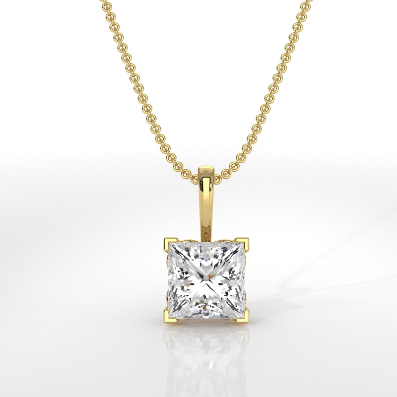 style Engagement Pendant, center is Princess shape Diamond Report by GIA, F Color & VS1 clarity, Made in 14k Yellow Gold (0.5 ct. tw.)