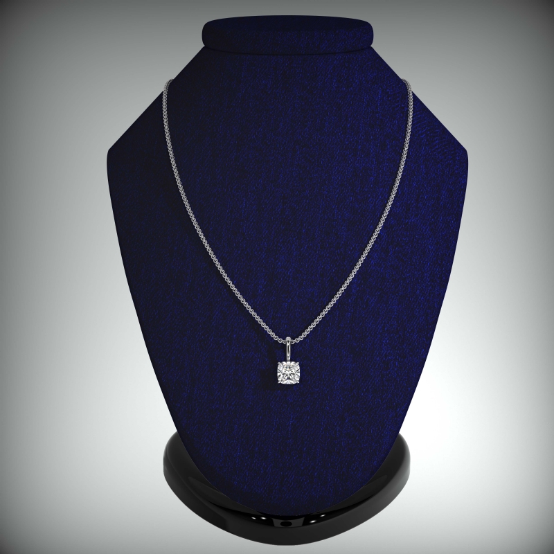 Prong Set Cushion Cut Diamond Solitaire Semi Mount Bail Pendant Platinum 950.