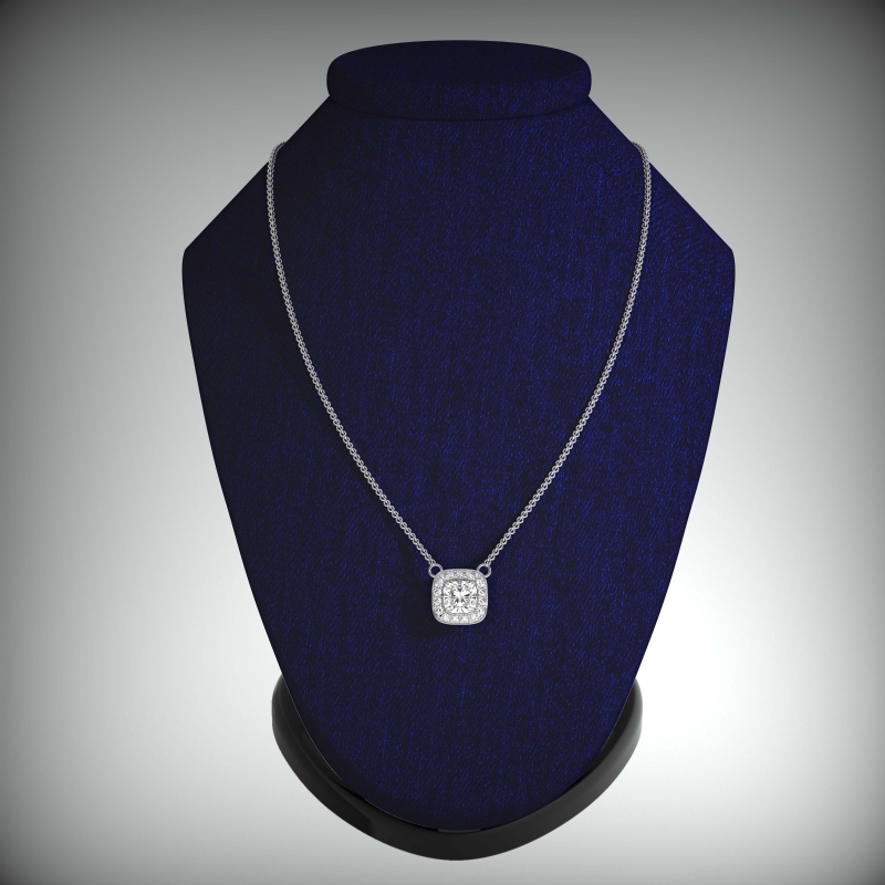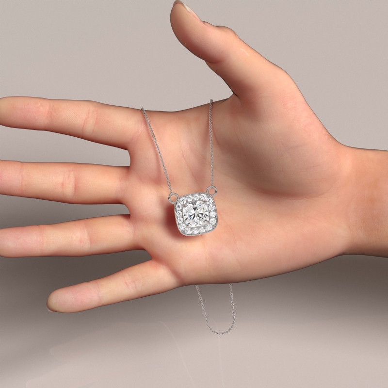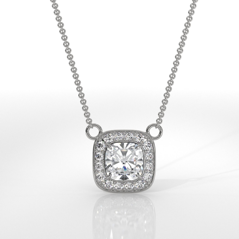 cushion diamond engagement pendant report by gia, j color & vvs2 clarity, 18k white gold (0.63 ct. tw.)