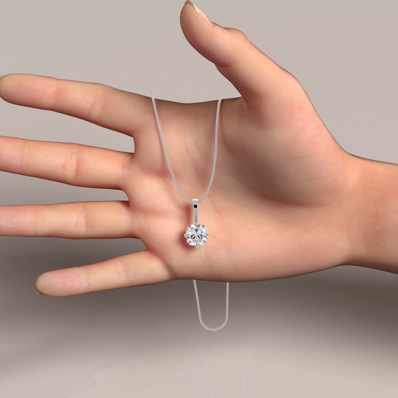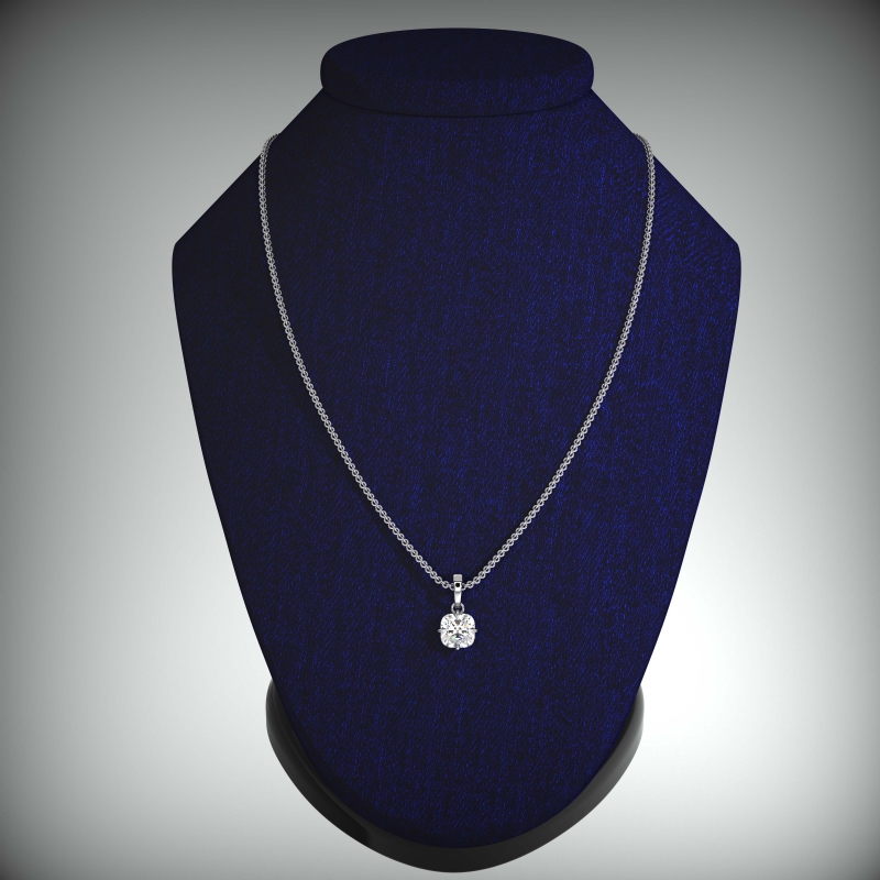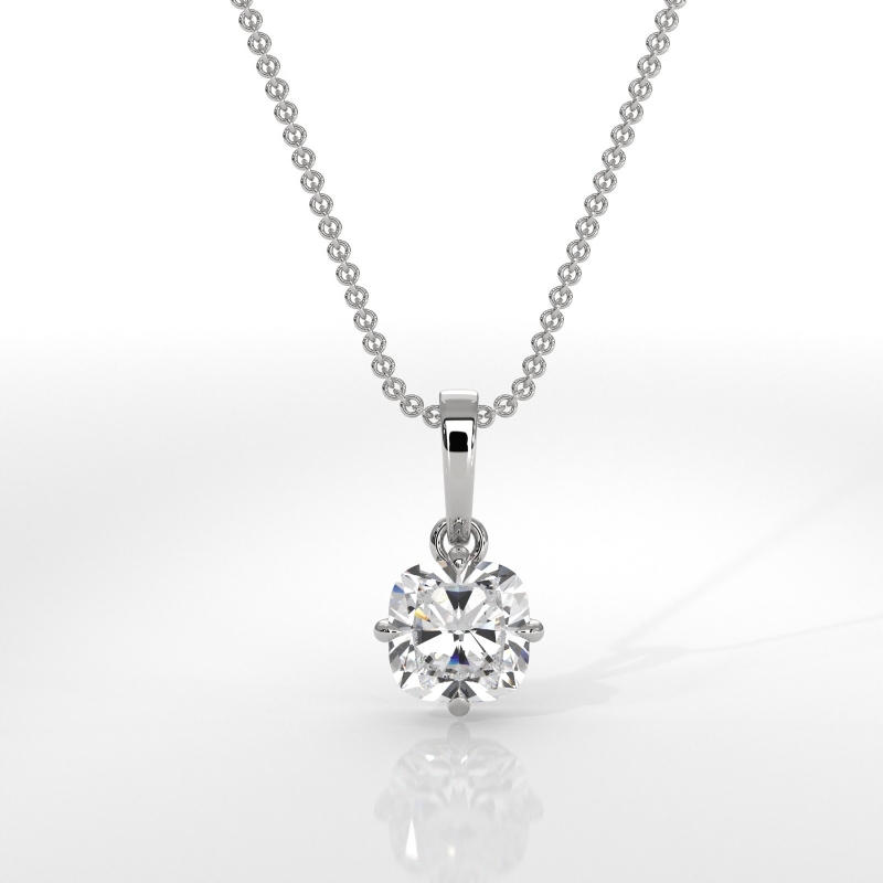 Cushion Cut Semi Mount Solitaire 4Prong Scroll Pendant With Chain Platinum 950.