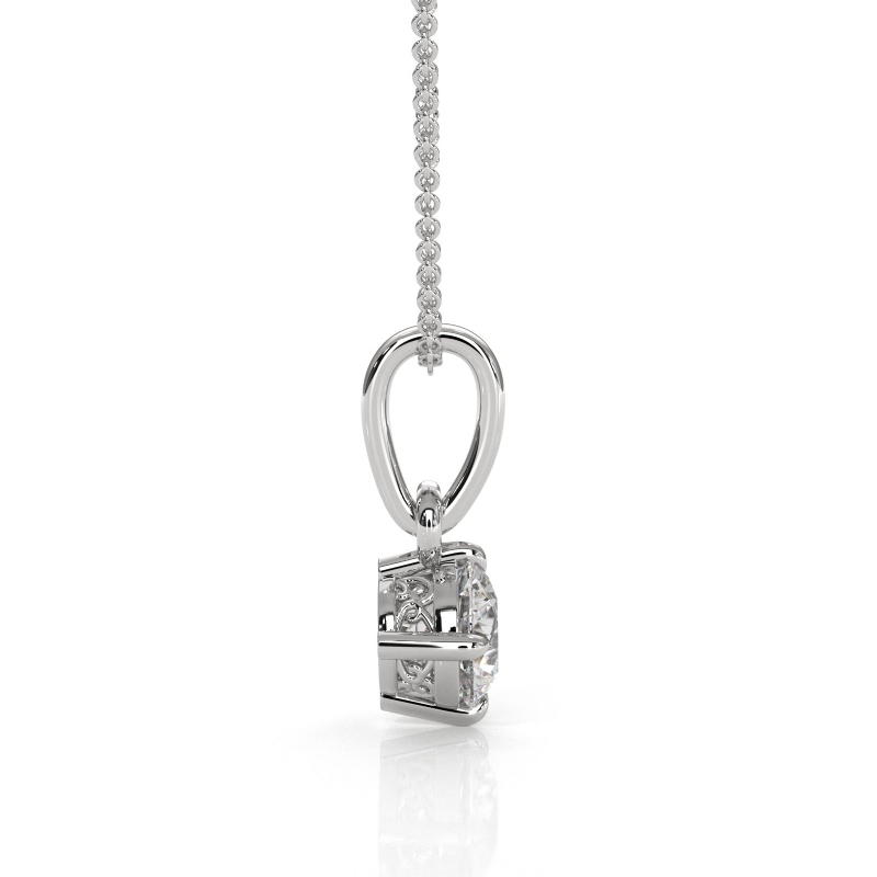 Cushion Cut Semi Mount Solitaire 4Prong Scroll Pendant With Chain Platinum 950.