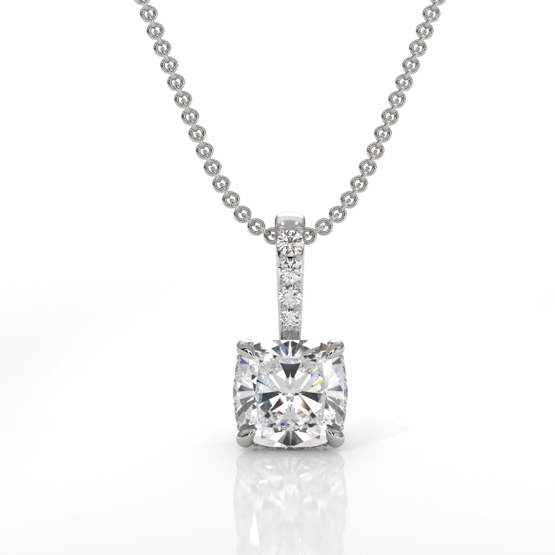 style Engagement Pendant, center is Cushion shape Diamond Report by GIA, D Color & VS1 clarity, Made in Platinum 950 (0.57 ct. tw.)