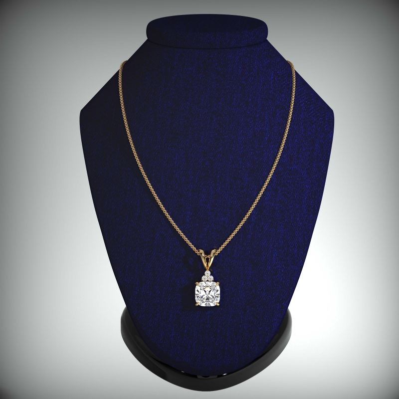 style Engagement Pendant, center is Cushion shape Diamond Report by IGI, E Color & VS1 clarity, Made in 18k Yellow Gold (5.53 ct. tw.)