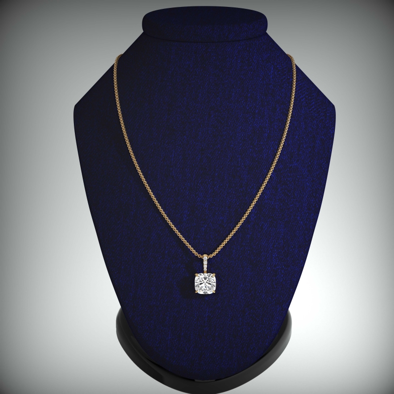 cushion diamond engagement pendant report by gia, d color & vs1 clarity, 18k yellow gold (0.53 ct. tw.)