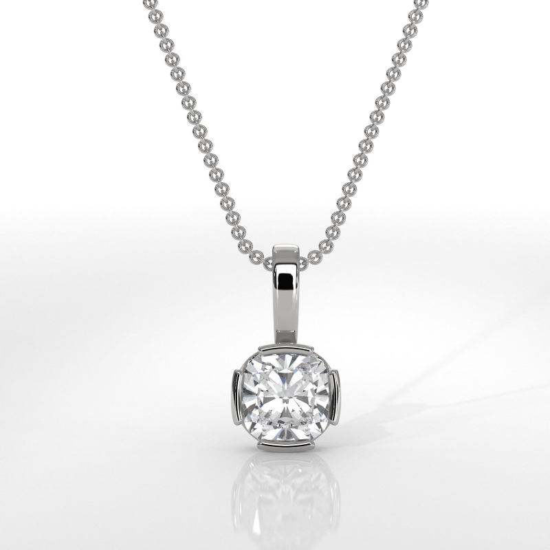 Bezel Set Round Cut Solitaire Semi Mount Bail Pendant in 18k White Gold.