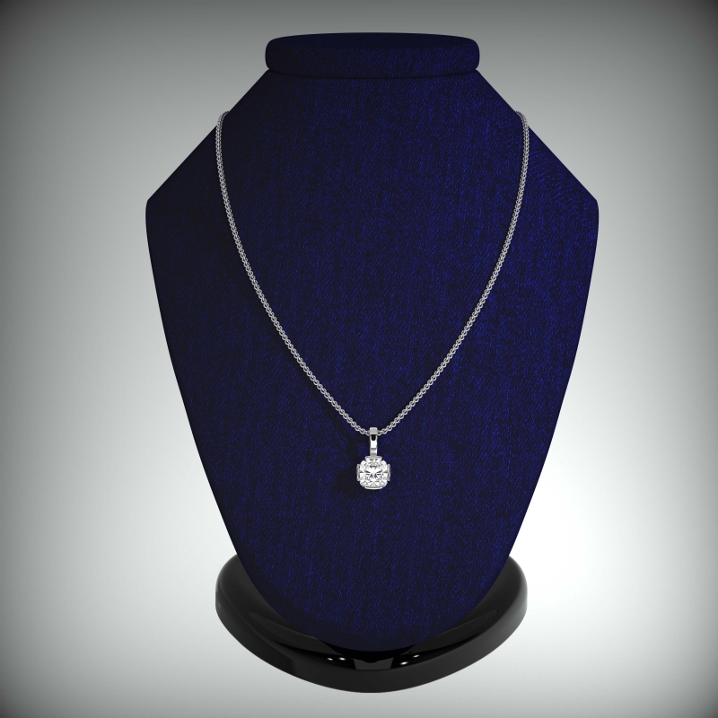 cushion diamond engagement pendant report by gia, j color & vs1 clarity, 18k white gold (0.55 ct. tw.)