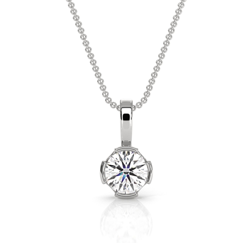 Bezel Set Round Cut Solitaire Semi Mount Bail Pendant in 18k White Gold.