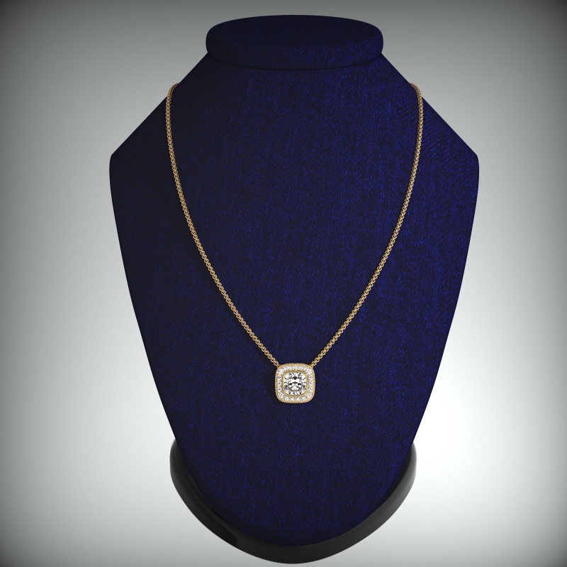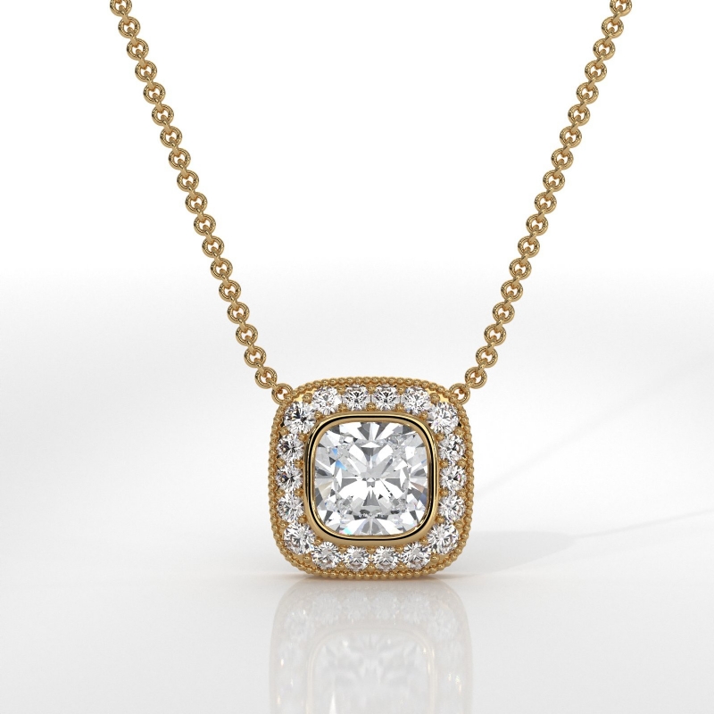cushion diamond engagement pendant report by gia, d color & vs1 clarity, 14k yellow gold (0.67 ct. tw.)