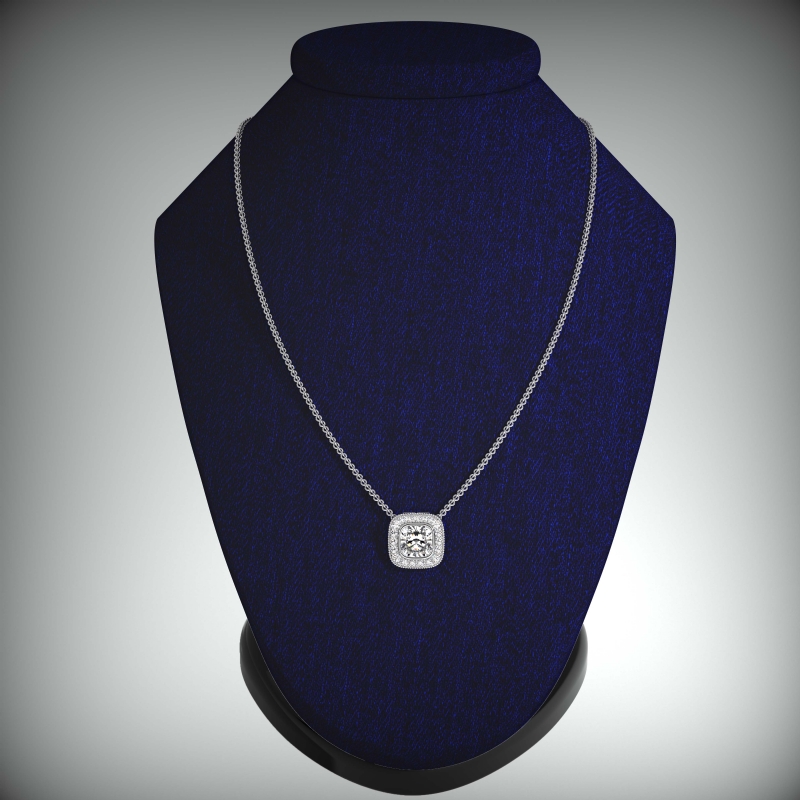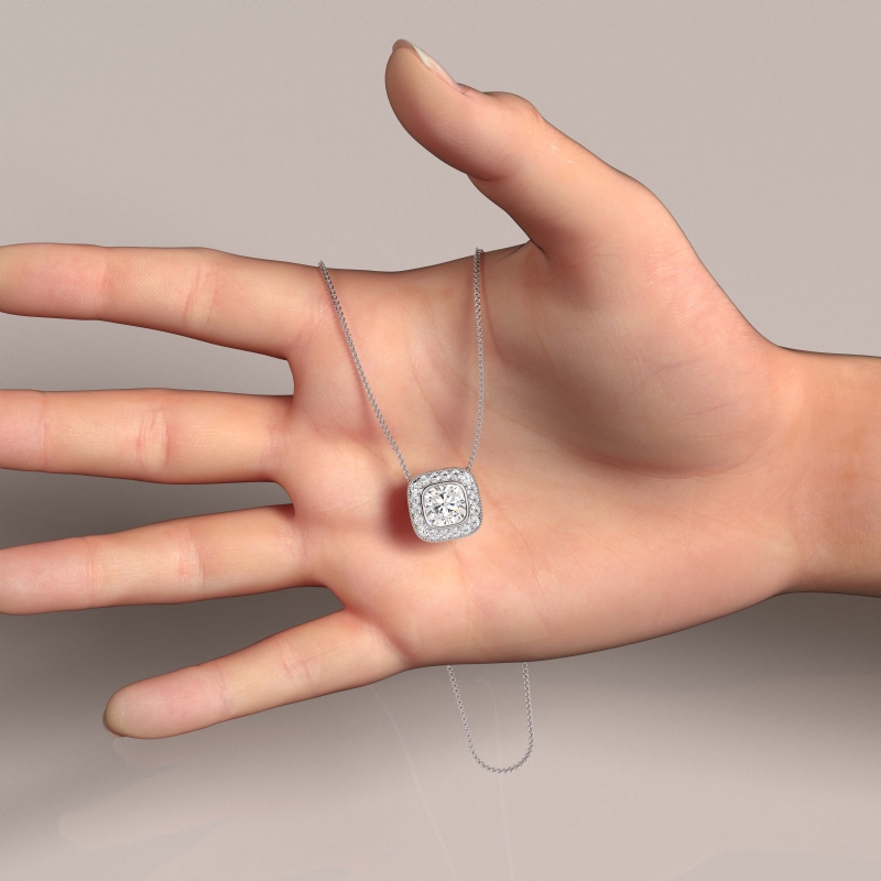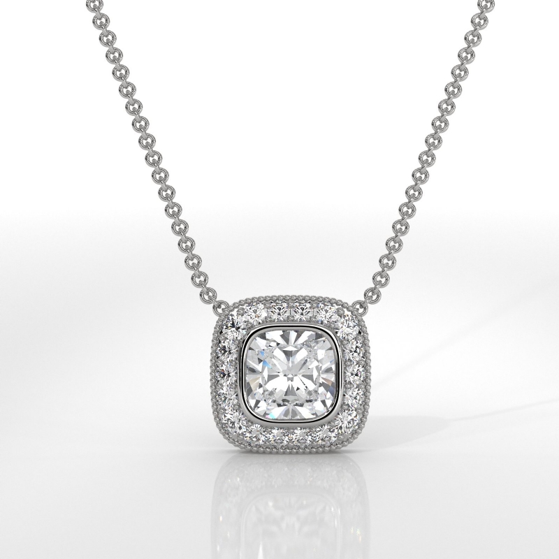 style Engagement Pendant, center is Cushion shape Diamond Report by GIA, D Color & VS1 clarity, Made in Platinum 950 (0.67 ct. tw.)