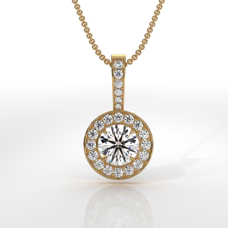style Engagement Pendant, center is Round shape Diamond Report by GIA, F Color & VS2 clarity, Made in 14k Yellow Gold (0.69 ct. tw.)