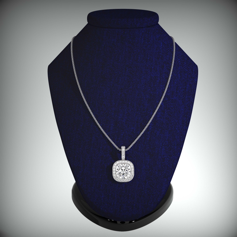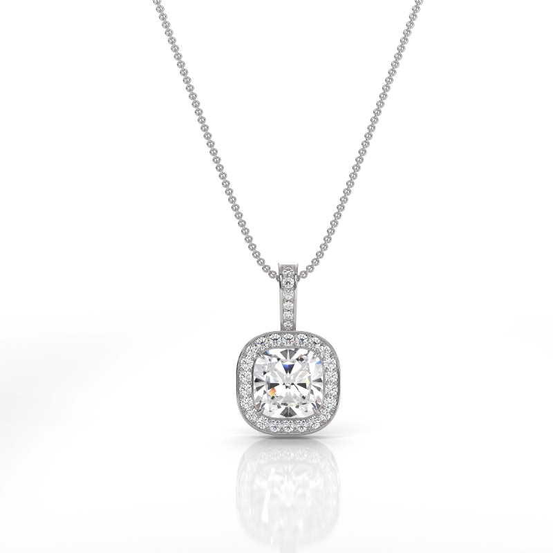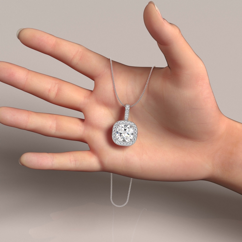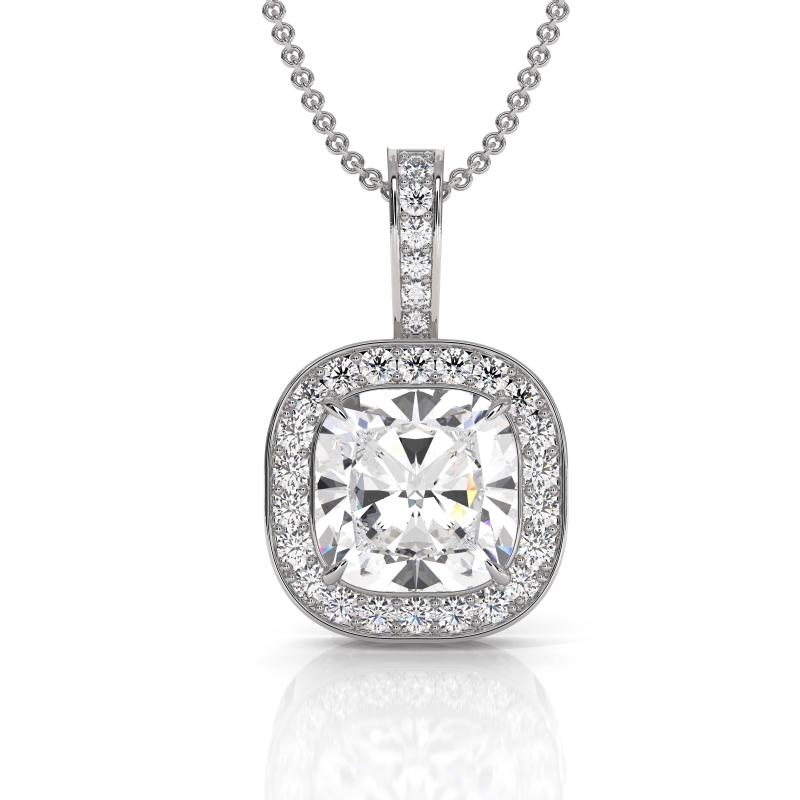 style Engagement Pendant, center is Cushion shape Diamond Report by IGI, E Color & VS1 clarity, Made in 18k White Gold (5.69 ct. tw.)