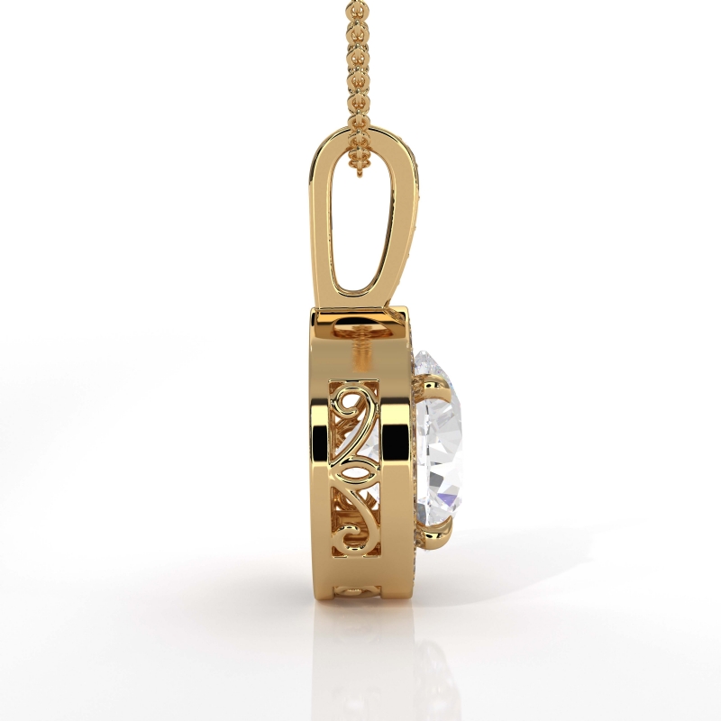 style Engagement Pendant, center is Round shape Diamond Report by IGI, F Color & VS1 clarity, Made in 18k Yellow Gold (4.73 ct. tw.)