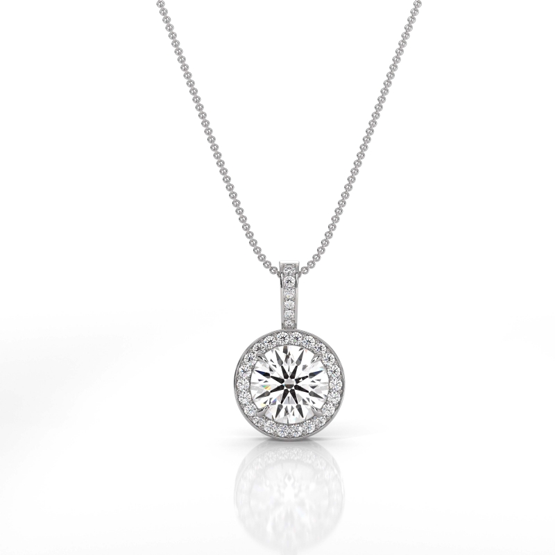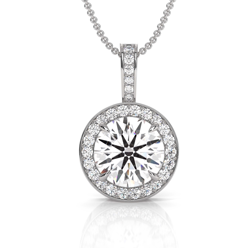 style Engagement Pendant, center is Round shape Diamond Report by IGI, F Color & VS1 clarity, Made in Platinum 950 (4.73 ct. tw.)