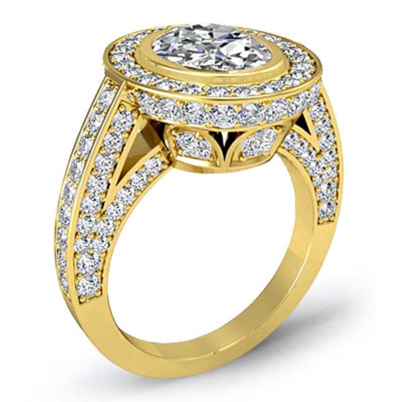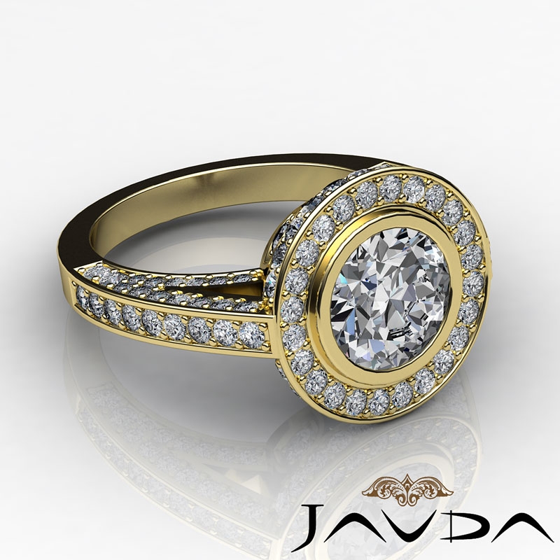 Halo Bezel Setting Sidestone style Engagement Ring, center is Round shape Diamond Report by GIA, E Color & VS1 clarity, Made in 14k Yellow Gold (2.5 ct. tw.)