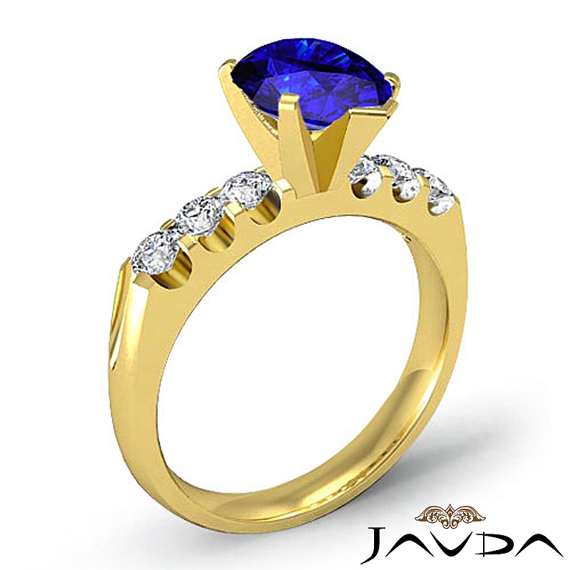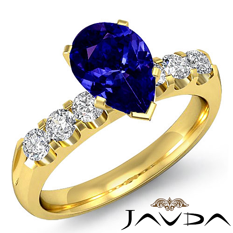 Classic 6 Stone Prong Shank style Engagement Ring, center is Pear shape D Block Tanzanite Report by , Color & clarity, Made in 14k Yellow Gold (1.31 ct. tw.)