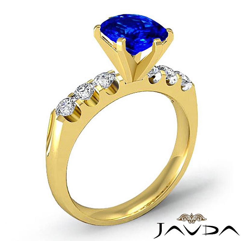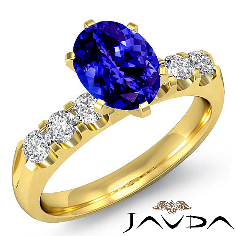 Classic 6 Stone Prong Shank style Engagement Ring, center is Oval shape D Block Tanzanite Report by , Color & clarity, Made in 14k Yellow Gold (1.31 ct. tw.)