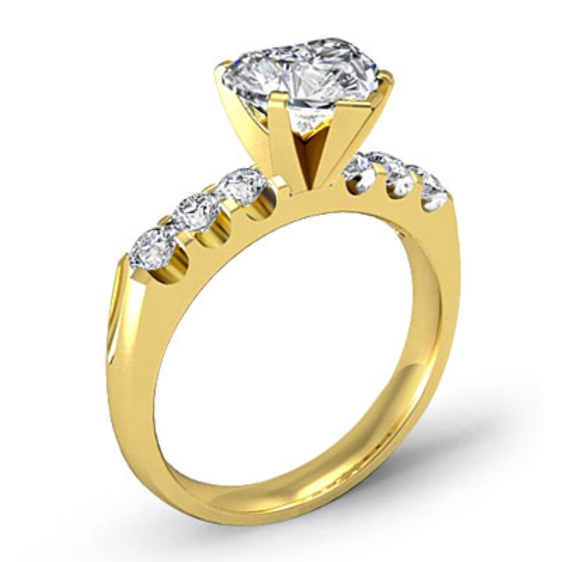 Classic 6 Stone Prong Shank style Engagement Ring, center is Heart shape Diamond Report by GIA, J Color & SI2 clarity, Made in 18k Yellow Gold (1.15 ct. tw.)