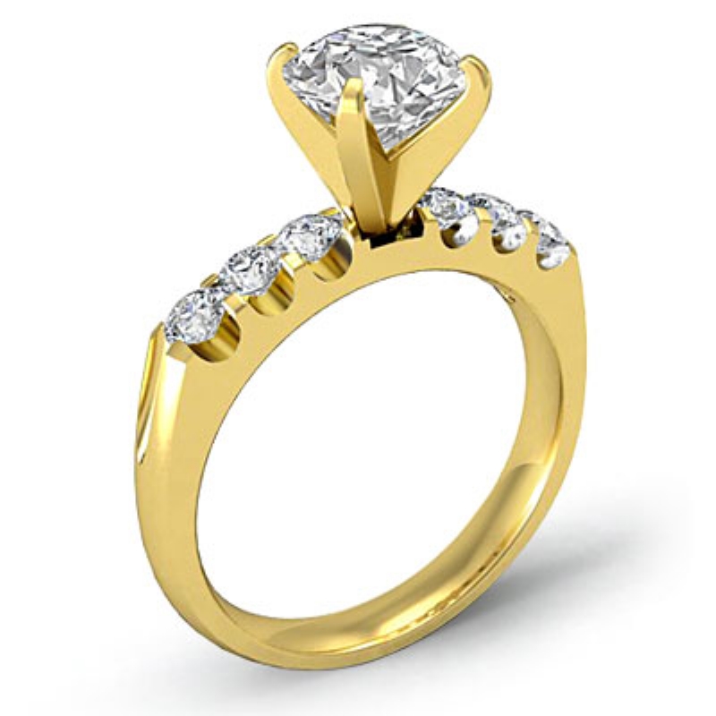 Classic 6 Stone Prong Shank style Engagement Ring, center is Round shape Diamond Report by IGI, H Color & VS1 clarity, Made in 18k Yellow Gold (1.71 ct. tw.)