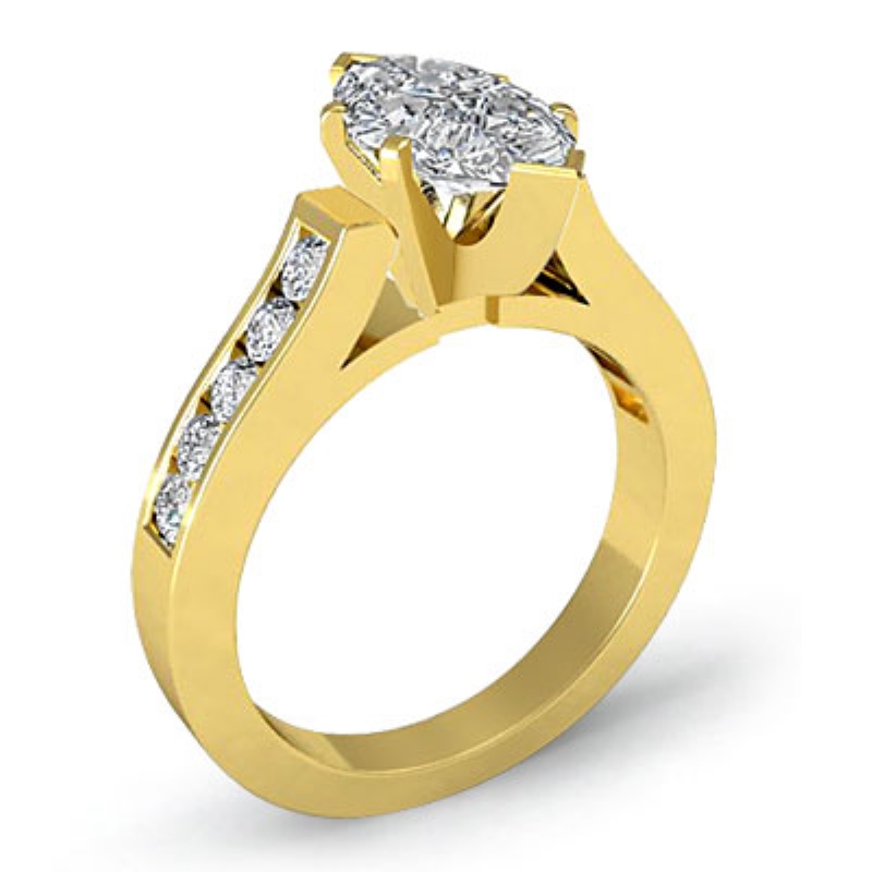 0.5Ct Round Diamond Engagement Ring Channel 18k Yellow Gold Semi Mount.