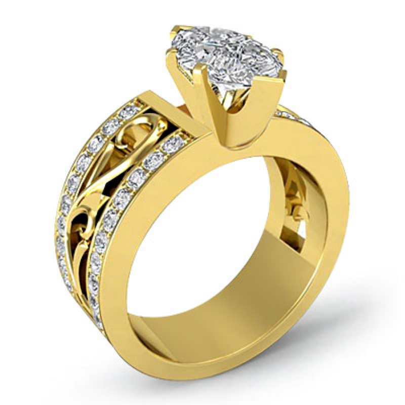 0.55Ct Round Diamond Fashion Wedding Ring 14k Yellow Gold Semi Mount.