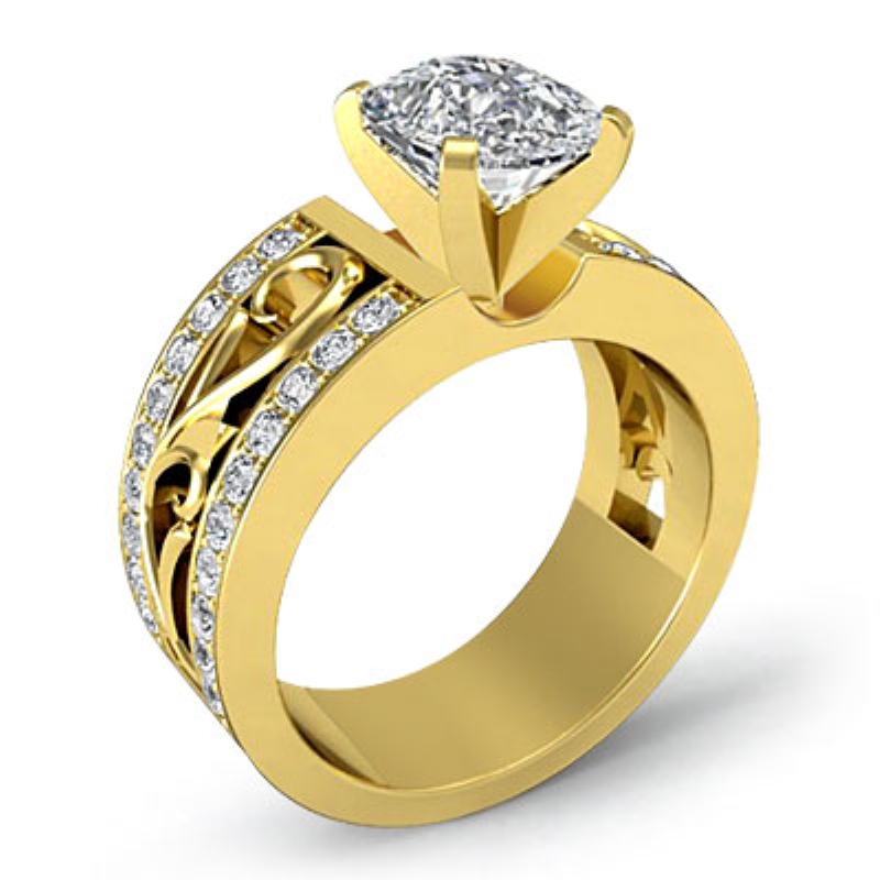 style Engagement Ring, center is Cushion shape Diamond Report by GIA, D Color & VS1 clarity, Made in 18k Yellow Gold (1.05 ct. tw.)