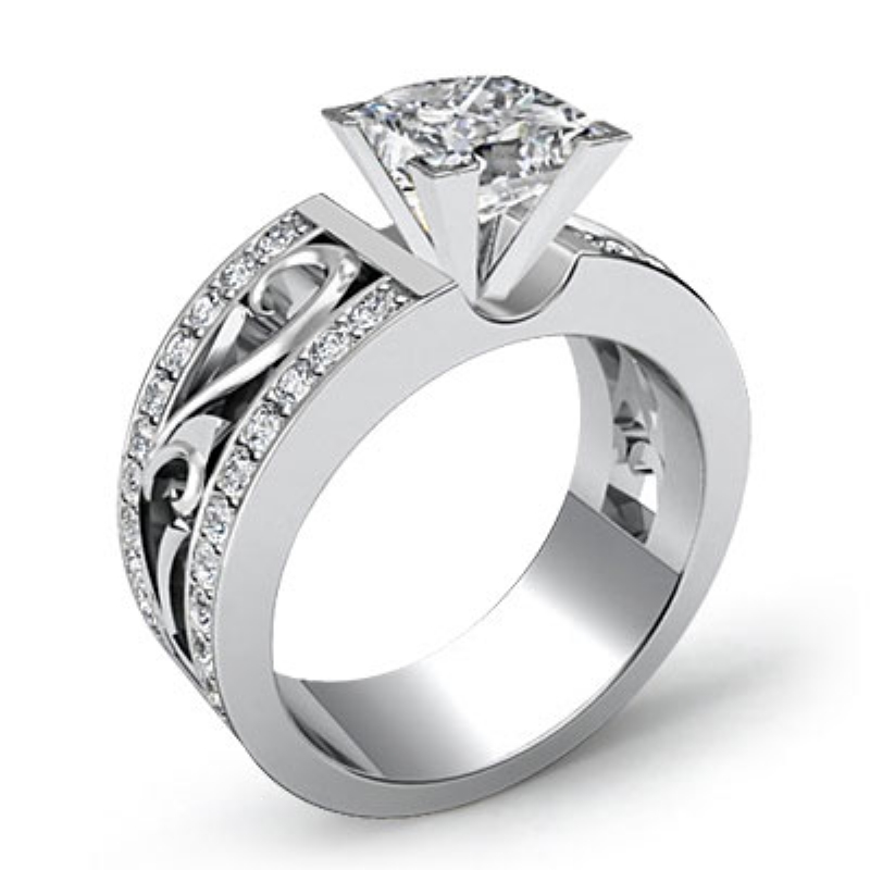 style Engagement Ring, center is Princess shape Diamond Report by GIA, E Color & VS2 clarity, Made in Platinum 950 (1.08 ct. tw.)