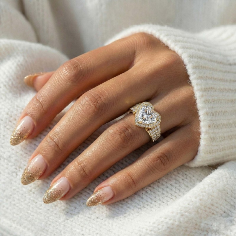 style Engagement Ring, center is Heart shape Diamond Report by IGI, D Color & VS1 clarity, Made in 14k Yellow Gold (4.57 ct. tw.)