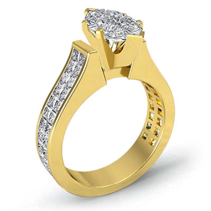 Invisible Shank Sidestone style Engagement Ring, center is Marquise shape Diamond Report by GIA, I Color & SI1 clarity, Made in 14k Yellow Gold (3.2 ct. tw.)