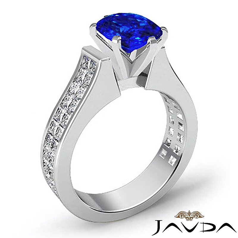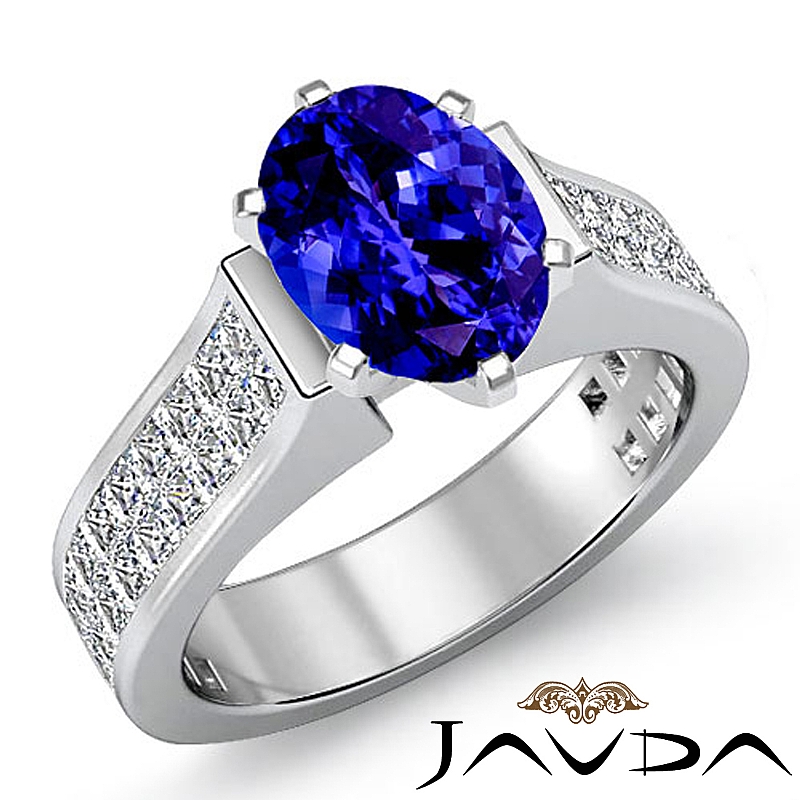 Invisible Shank Sidestone style Engagement Ring, center is Oval shape D Block Tanzanite Report by , Color & clarity, Made in 18k White Gold (3.25 ct. tw.)