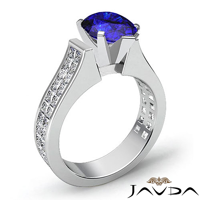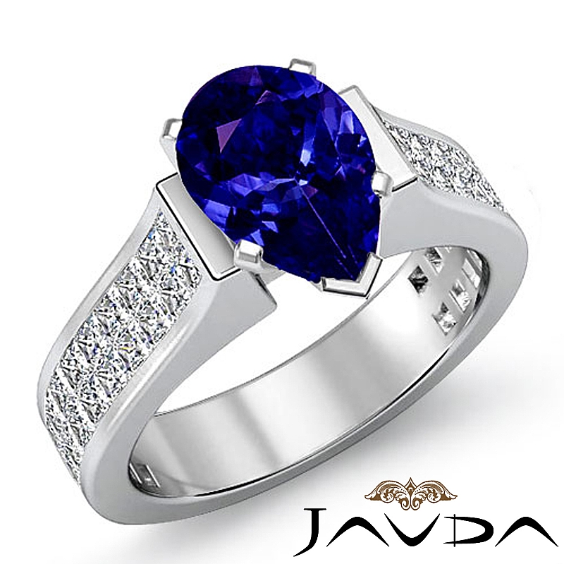 Invisible Shank Sidestone style Engagement Ring, center is Pear shape D Block Tanzanite Report by , Color & clarity, Made in 18k White Gold (3.25 ct. tw.)
