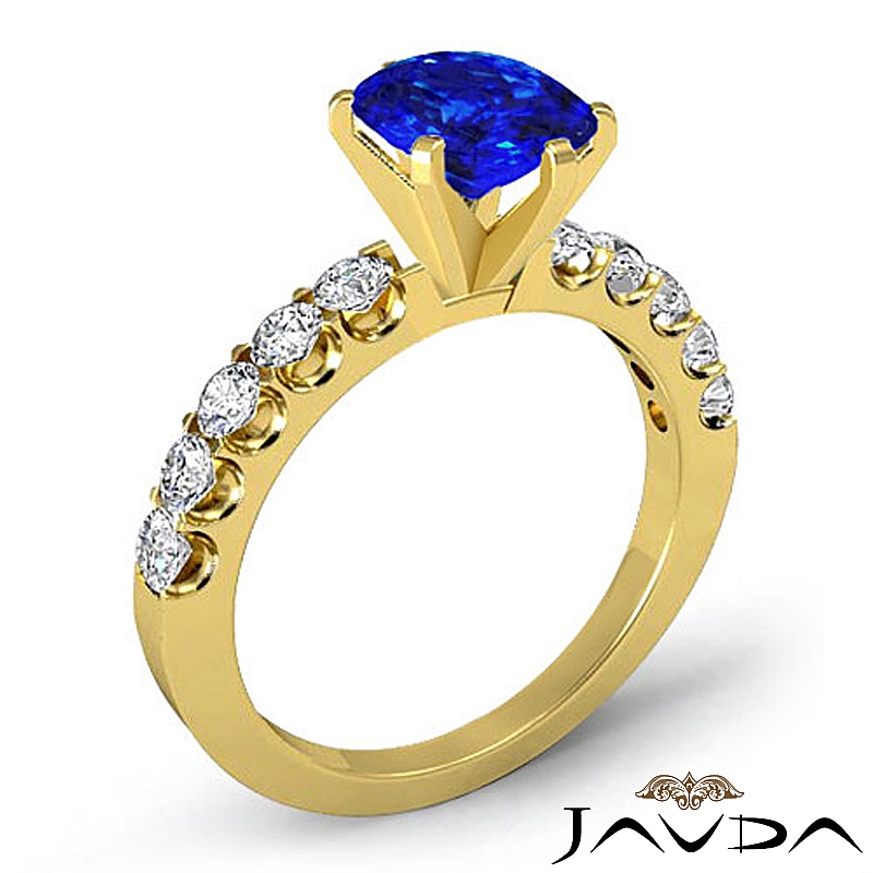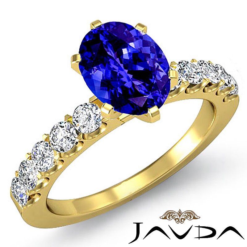 U Prong Setting Sidestone style Engagement Ring, center is Oval shape D Block Tanzanite Report by , Color & clarity, Made in 14k Yellow Gold (2 ct. tw.)