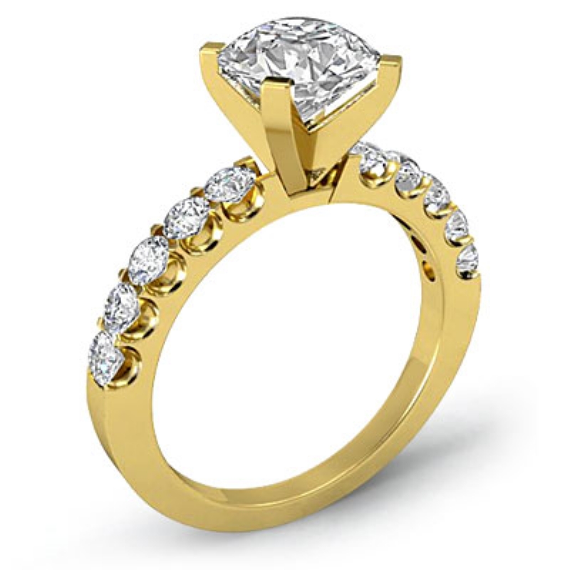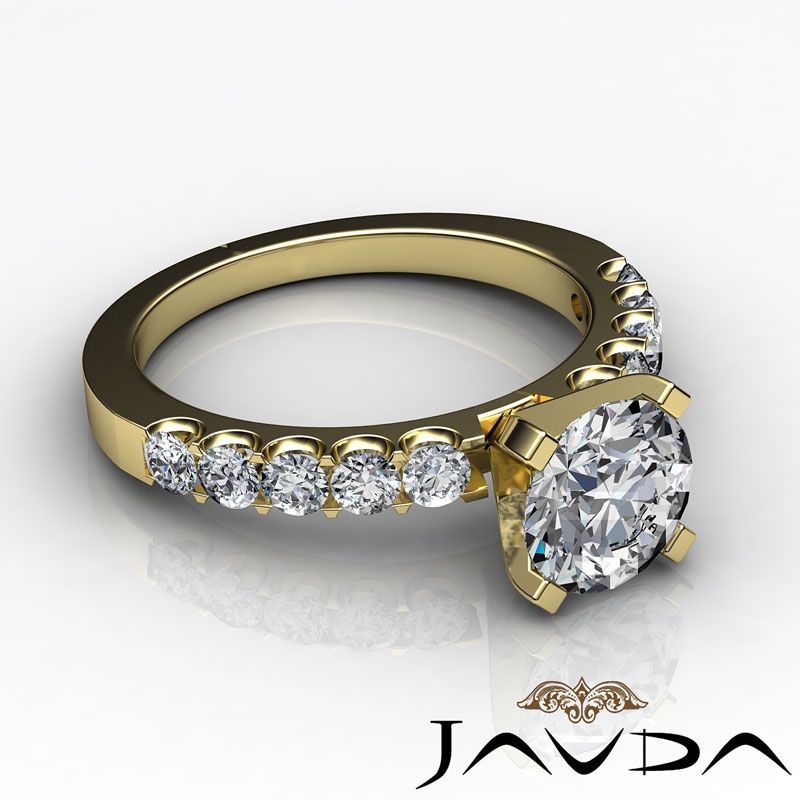 U Prong Setting Sidestone style Engagement Ring, center is Round shape Diamond Report by GIA, F Color & VS2 clarity, Made in 14k Yellow Gold (1.25 ct. tw.)