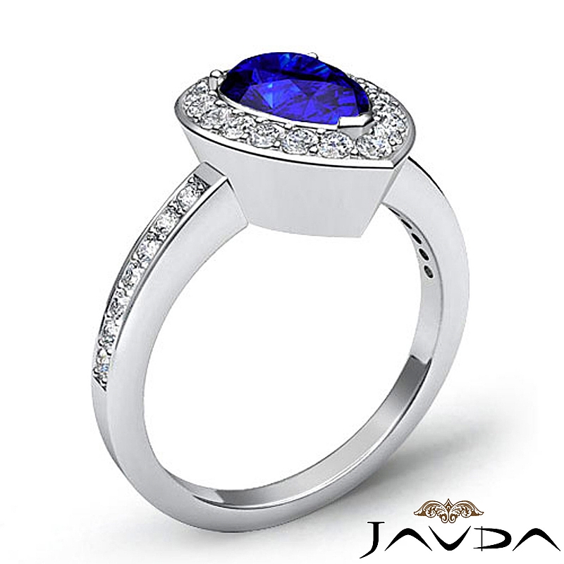 4 Prong Halo With Sidestone style Engagement Ring, center is Pear shape D Block Tanzanite Report by , Color & clarity, Made in Platinum 950 (2 ct. tw.)