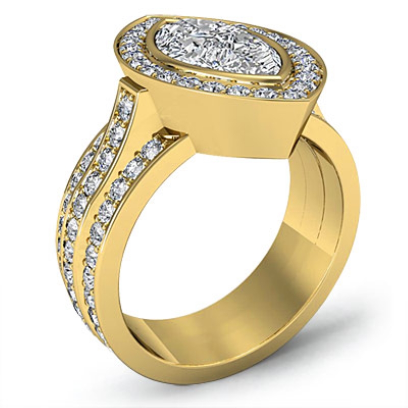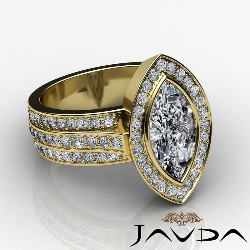 3 Row Shank Bezel Halo style Engagement Ring, center is Marquise shape Diamond Report by GIA, I Color & SI1 clarity, Made in 14k Yellow Gold (2.6 ct. tw.)