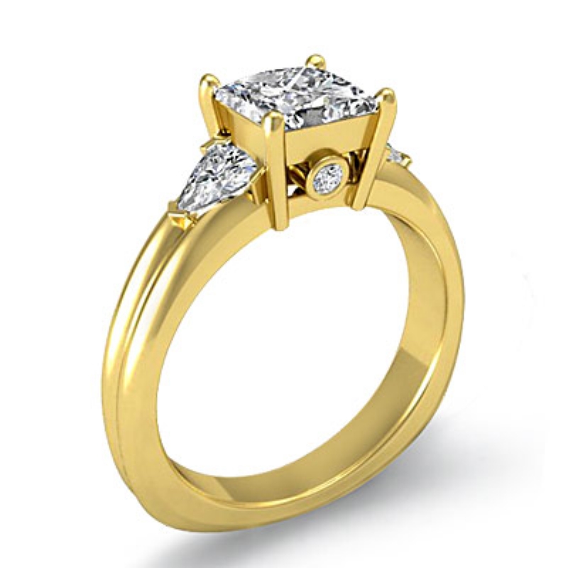 Trillion Accent 3 Stone style Engagement Ring, center is Princess shape Diamond Report by GIA, J Color & VS1 clarity, Made in 18k Yellow Gold (1.51 ct. tw.)
