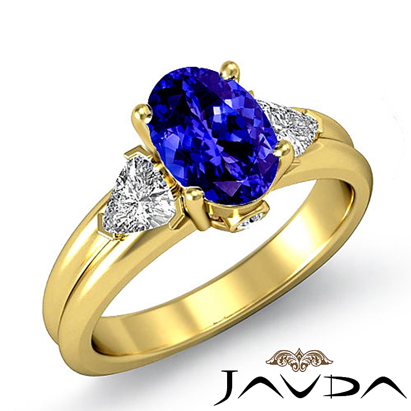 Trillion Accent 3 Stone style Engagement Ring, center is Oval shape D Block Tanzanite Report by , Color & clarity, Made in 18k Yellow Gold (1.58 ct. tw.)
