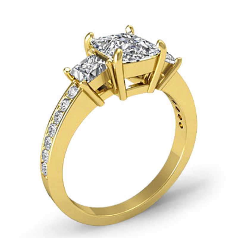 3 Stone Diamond Engagement Ring Princess Cut Semi Mount Setting 14k Yellow Gold 0.8Ct.