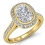 0.8Ct Diamond Engagement Ring 18k Yellow Gold Round Semi Mount Halo Pave Setting.